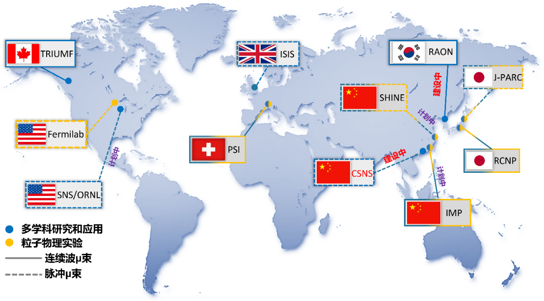 图3 国际上正在运行的、建设中的和拟建的缪子源(2024年)