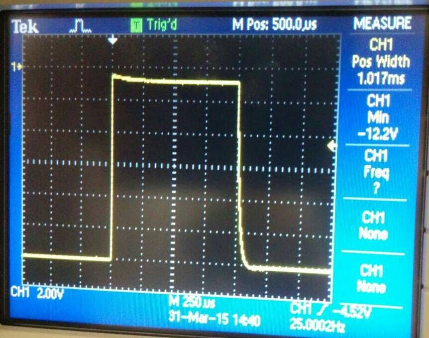 调制器输出调制阳极脉冲波形1ms@120kV/25pps