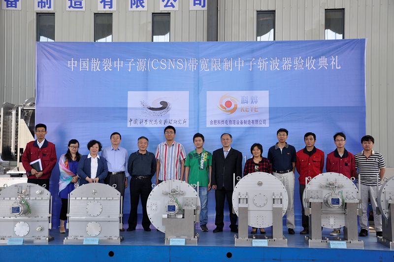 5月11日,中国散裂中子源带宽限制中子斩波器批量制造出厂验收会在合肥科烨电物理设备有限公司召开。东莞分部主任陈元柏、中子科学部主任王芳卫、CSNS总工程师屈化民、CSNS实验分总体机械总工王灵淑、通用粉末衍射谱仪系统负责人何伦华、中子光学系统负责人王平等人参加了验收会。验收组认为此次批量制造的七台带宽限制斩波器的各项指标均达到或优于设计指标及技术要求,档案资料齐全,同意通过出厂验收。