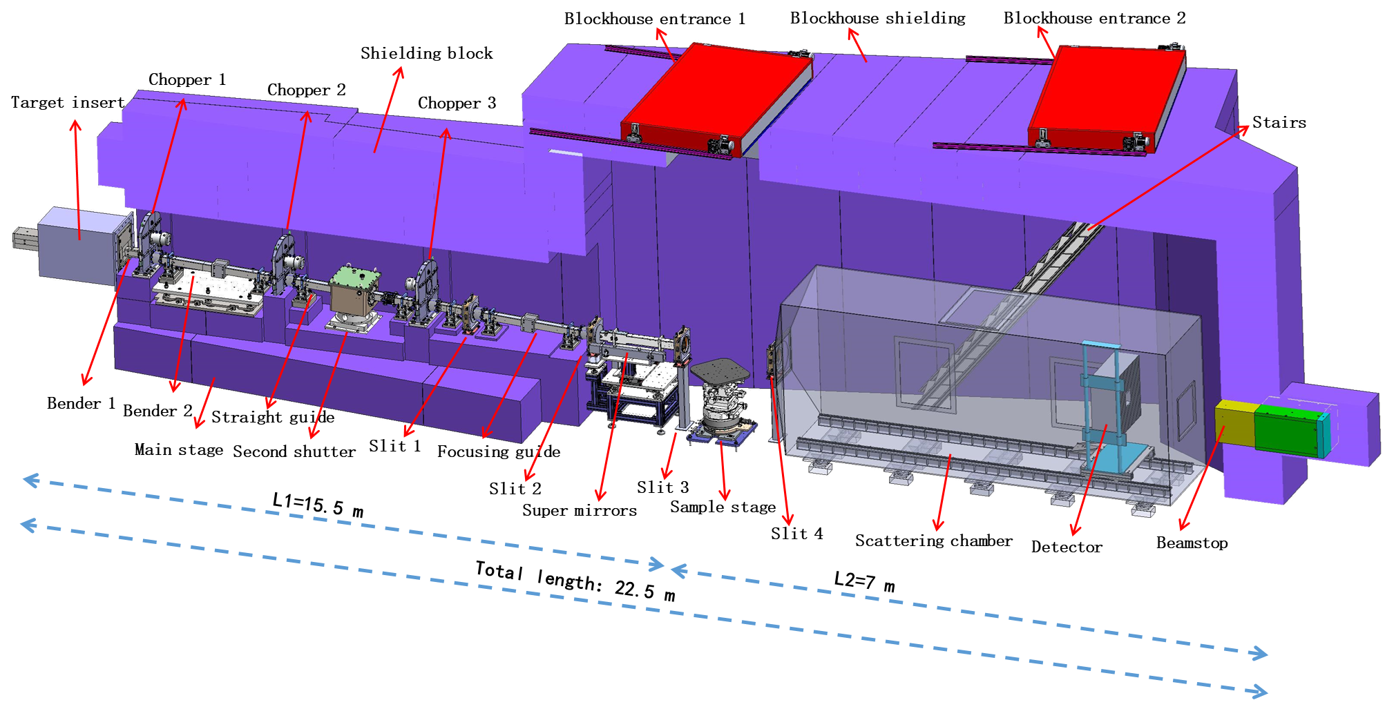 液体中子反射仪(Liquid neutron reflectometer, LNR) 具有水平样品几何结构, 可与现已建成的具备极化中子的竖直样品几何结构的多功能中子反射谱仪形成互补,实现对软物质、先进材料和生命科学等薄膜体系表(界)面结构和化学组成及其动态变化过程的表征,尤其适合对液-液、固-液、液-气以及固-气界面的研究。LNR谱仪将集合镜面反射、非镜面反射和掠入射小角散射实验模式,从而揭示薄膜在三维空间的完整结构信息。
