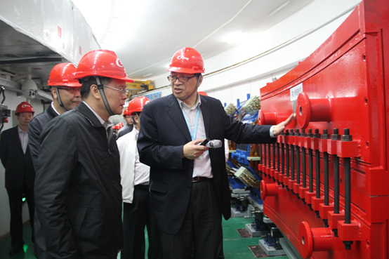 吕书记一行观看了散裂中子源沙盘,初步了解了项目的基本情况、科学原理和最新进展,并赴现场参观了直线隧道、环隧道和靶站谱仪大厅。随后双方人员举行座谈,陈和生详细报告了项目的概况、科学意义和应用,感谢了地方政府一如既往的大力支持。陈和生强调,高能所一直在积极推动与地方政府在科技成果应用和产业化方面的合作,争取为地方经济做出贡献,并与东莞理工学院合作建立中子散射技术工程研究中心,为该校建设高水平理工科大学作出重要贡献。吕书记高度肯定散裂中子源工程取得的阶段性成果,表示将全力支持和配合项目的建设,尽快落实散裂中子源希望市政府支持的事项,并希望项目投入运行之后,通过谱仪建设和应用,积极推动东莞市的产业化发展。
