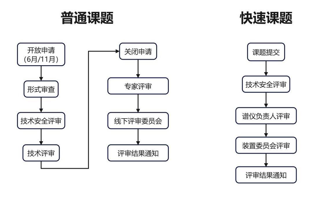 (2)快速课题是指在课题征集期之外,为进行具有高影响力、且需求急迫的科学研究所开设的课题。需经设施特别批准,如需申请建议您提前联系谱仪负责人。