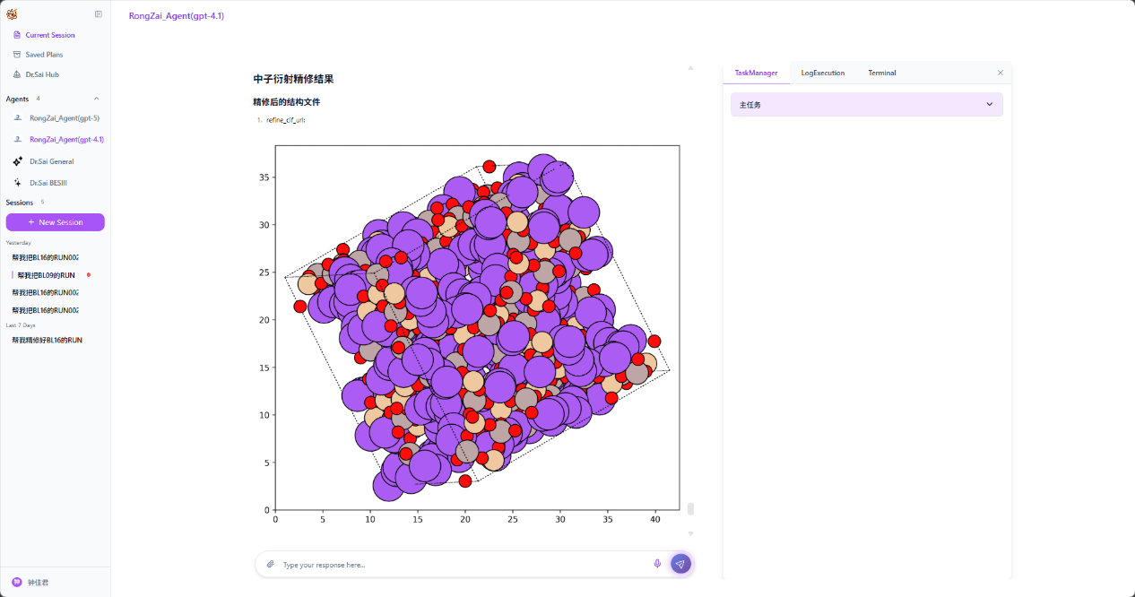 核心能力:自然语言交互式精修;晶体结构自动优化;实验报名自动生成
